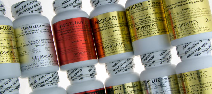 Neodontics, Inc. is a manufacturer and distributor of specialty non precious dental alloys worldwide. We have been committed to serving and providing reliable and high quality dental alloys for dental laboratories and suppliers since 1988. All of our product development and research takes place at our own in house manufacturing lab facility in Sun Valley, California. In creating your alloy, our metallurgists take every precautionary measure possible to maintain the highest purity, quality, and consistency, thus realizing a far superior alloy to most others in the industry. All of our alloys are formulated and manufactured on premises with 99.99% pure raw materials. Neodontics, Inc. products are FDA approved.